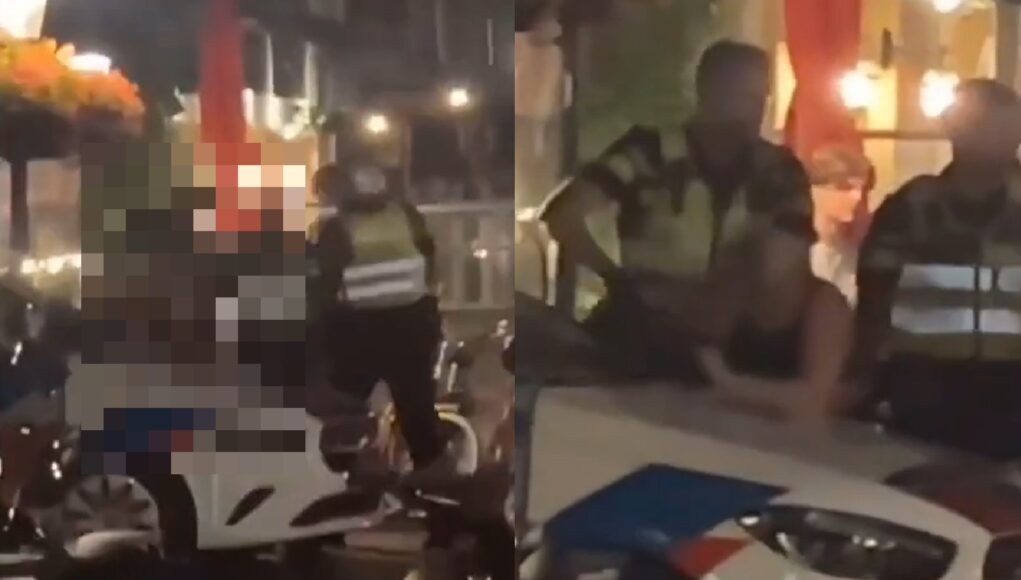 De beelden waarin te zien zou zijn wat er precies voorafging aan de arrestatie, worden online veel gedeeld, maar zijn niet geschikt om hier te tonen in verband met de privacy van de betrokkenen.
